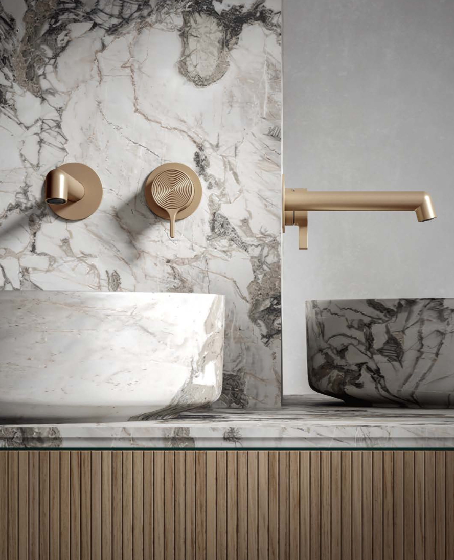 Doge is a brass bathroom faucet series. It’s available as a single-lever mixer or two- and three-hole taps, both countertop and wall-mounted, as well as exclusive deck-mount and shower.