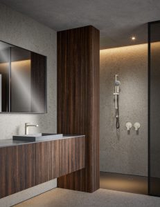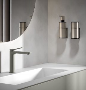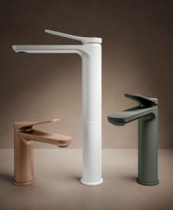 The Project collections are available in Chrome and Nickel and a rich range of colours. Four shades of grey, Light Dove, Medium Grey, Green Grey and Blue Grey for a palette inspired by one of the most current colour trends, also Matt White and Matt Black and the precious satin varnishes: Gold, Copper, Brass and Gunmetal. The Project taps are a perfect match for contemporary style bathrooms, and in synergy with the design choice. They become an eye catching and sophisticated detail.