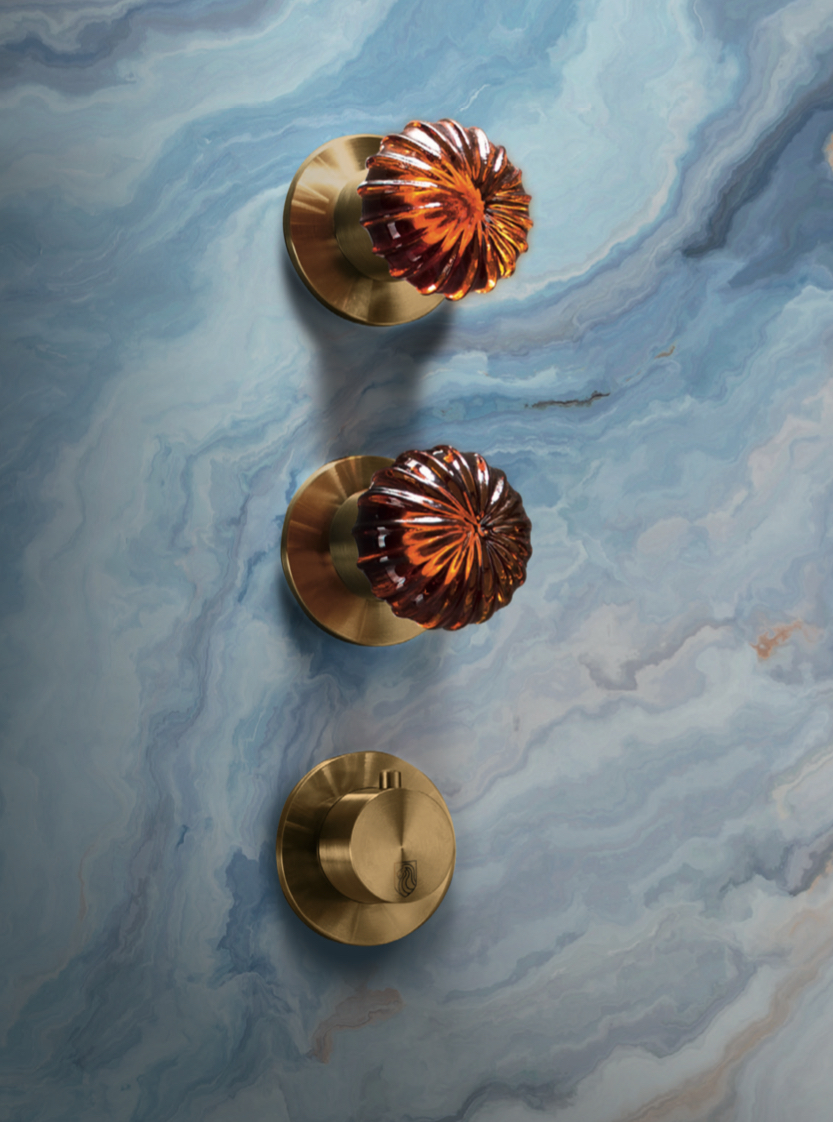 Radomonte glass handles are made of Murano glass, according to the traditional processing methods of Venetian glass art. Each piece is handcrafted and therefore unique. For more information on Murano glass click here