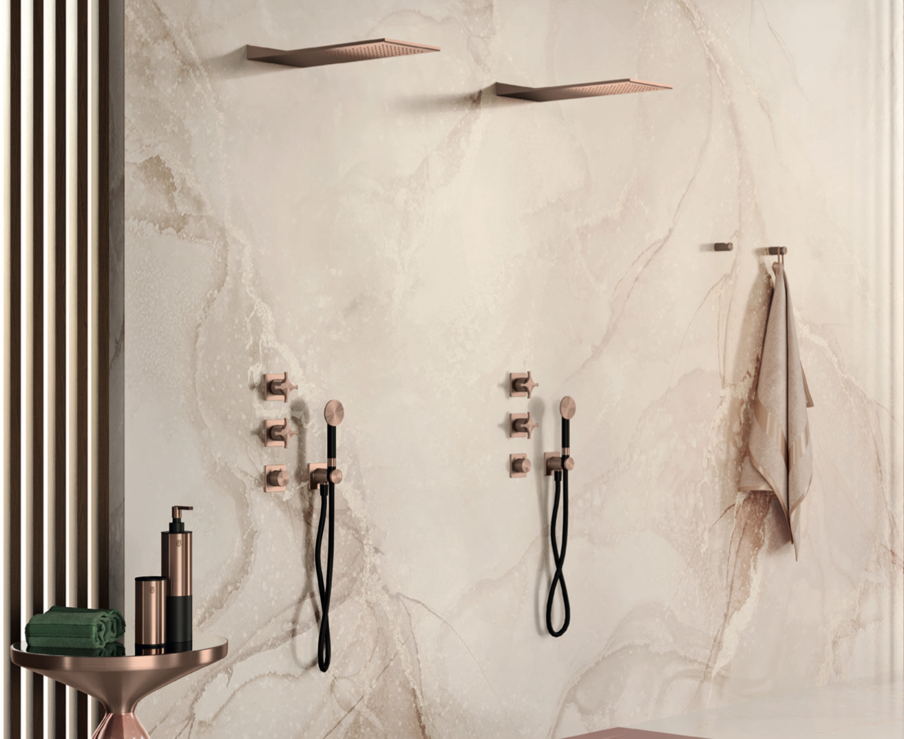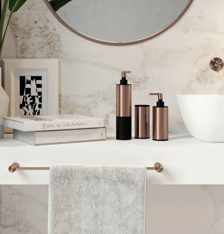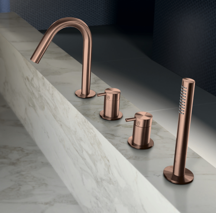Radomonte collections are made of stainless steel in brushed or polished finish. Brushed steel is also available in gold, bronzo, rosee and carbon PVD finishes. For more information on PVD(Physical Vapor Deposition) click here